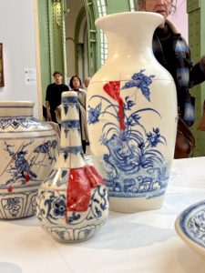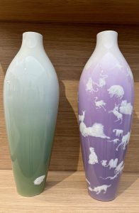 Le stand de la Manufacture nationale de Sèvres présentait, entre autres, des porcelaines réalisées avec un décor, conçu par Yang jiechang, en léger relief.
