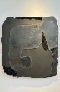 Les quelques « Amis » qui ont pu bénéficier de cette invitation ont été accueillis par Marc Donnadieu, commissaire du secteur Promesses, qui leur a présenté l’ensemble de la 28ème édition d’une foire forte de 165 exposants en provenance de vingt pays. Cette année, deux thématiques étaient à l’honneur : la réparation, dans son sens le plus large, tissant des liens entre passé, présent et futur, visant à recomposer des bribes et des fragments, à soigner des blessures, corporelles ou symboliques ; Babel – art et langage en France, réunissant des artistes travaillant sur la richesse du signe, son énigme, son ambiguïté et sa multiplicité. Les œuvres oscillant entre abstraction et figuration sont une invitation à repenser notre relation aux mots et aux symboles.