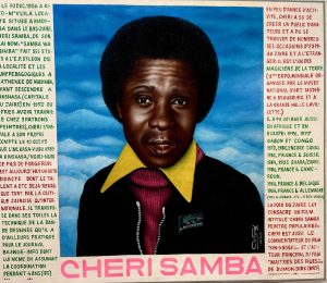 ![]() Chéri Samba (né en 1956). Autoportrait. 1988-1989. Huile sur toile. Fonds d’art contemporain de la ville de Paris. |